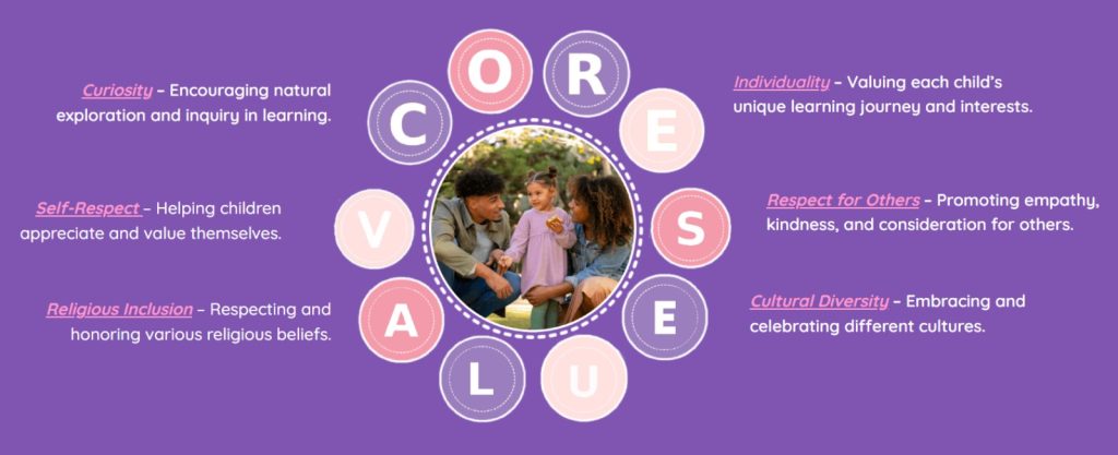 Allowing the child’s curiosity to direct his/her learning. Teachers assist the child to cultivate an appreciation for themselves, others, and their surroundings. Celebrating culture diversity and religion fosters a culture of acceptance and unity.